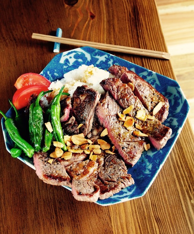 パワーフードの代表選手「ガーリックステーキ」がドーンと載った、ガッツリ肉丼!
